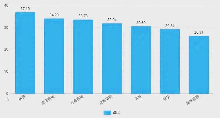 中国电竞直播平台用户在观看与电竞相关内容平台占比