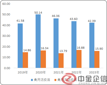 2019-2023年禽用活疫苗与灭活疫苗市场销售额分析